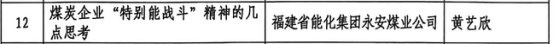 此次征文评选中,公司选送两篇论文脱颖而出,喜获佳绩——黄艺欣撰写的《煤炭企业“特别能战斗”精神的几点思考》荣获一等奖,陈先臻撰写的《大力弘扬煤矿人“特别能战斗”精神》荣获三等奖。